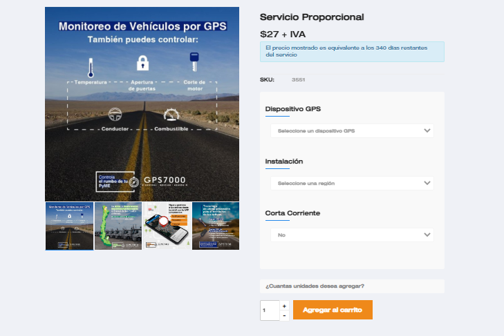 1. En este paso deberás seleccionar un tipo de dispositivo GPS, la zona donde realizarás la instalación y si requieres algún otro servicio adicional.